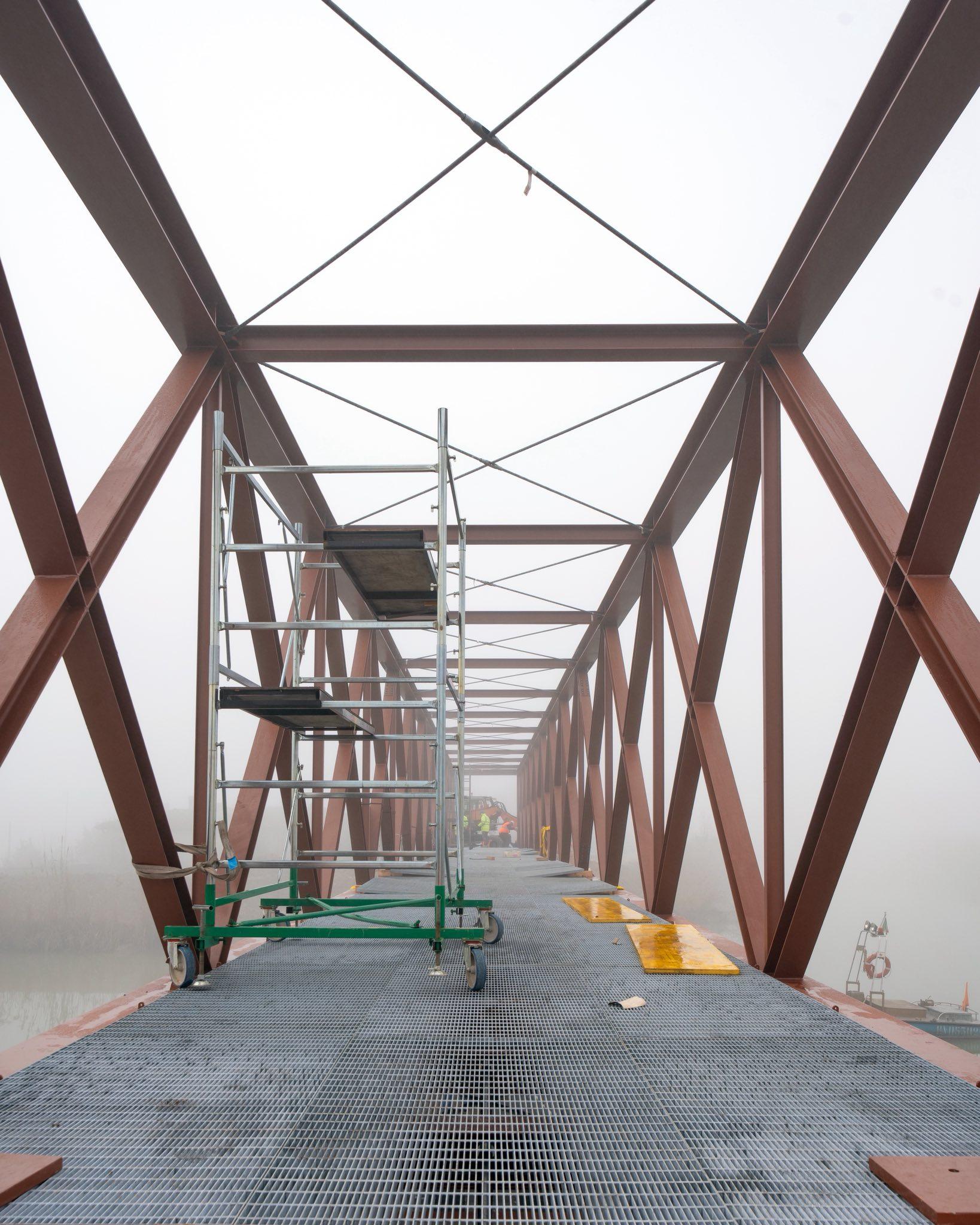 La passerella sul canale Brian è una costruzione in acciaio lunga 48 metri, con una larghezza di 3 metri.