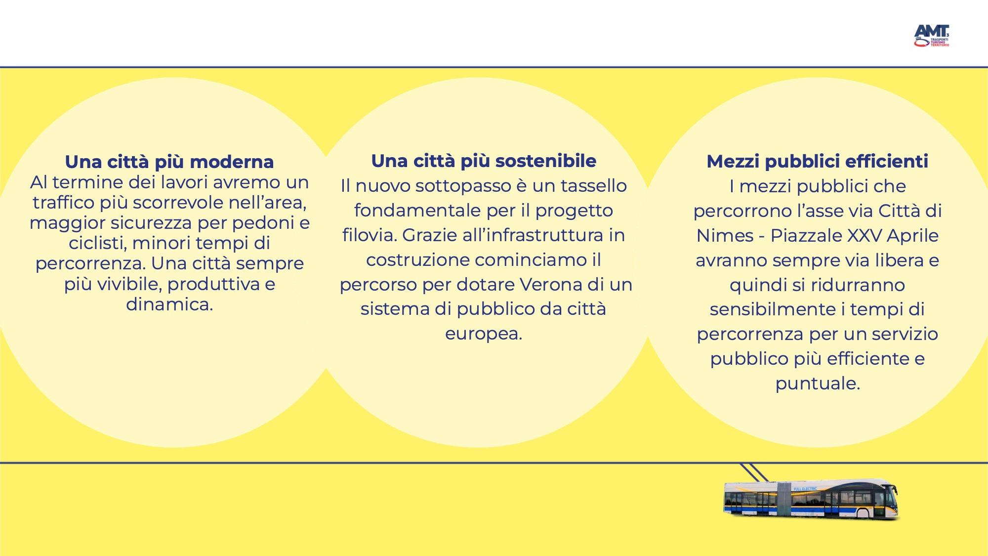 Crediamo che il filobus, anche grazie a questa opera, sia il punto di partenza e non d’arrivo per dotare il Comune di Verona di una mobilità differente, al pari delle città vicine come Brescia e Padova e sulla linea delle più importanti metropoli europee.