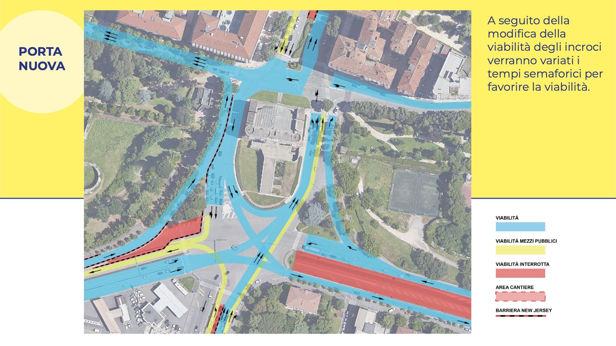 Porta Nuova. A seguito della modifica della viabilità degli incroci verranno variati i tempi semaforici per favorire la viabilità.