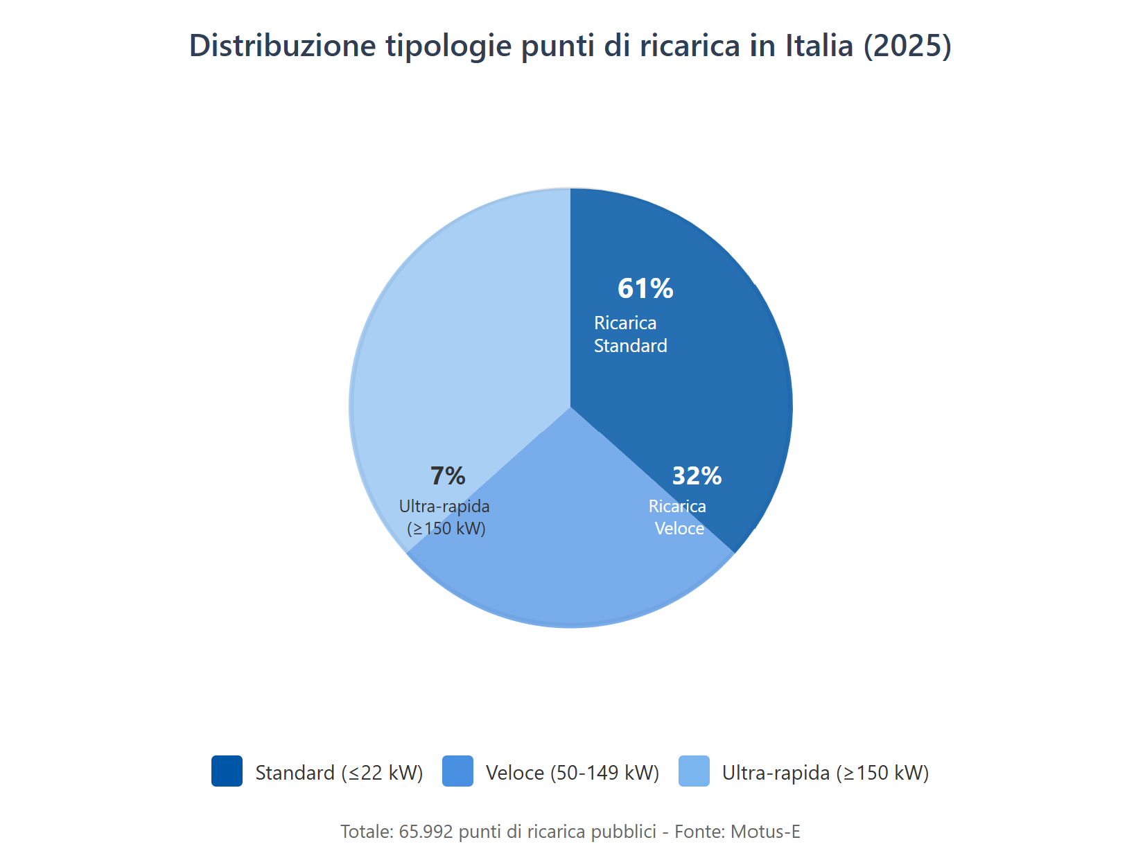 L’Italia ha fatto progressi significativi sul fronte delle infrastrutture di ricarica. A marzo 2025 sono attivi 65.992 punti di ricarica ad uso pubblico, con una crescita del 17% rispetto al 2024. Particolarmente rilevante l’espansione delle colonnine ultra-rapide (≥150 kW) che hanno raggiunto quota 4.230 unità distribuite sul territorio nazionale.
