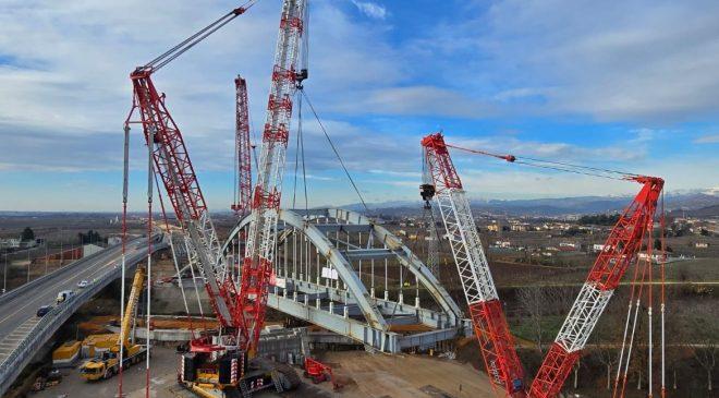 A San Bonifacio, in provincia di Verona, è stato completato il varo di un imponente ponte ferroviario sul torrente Alpone, un’opera fondamentale nei lavori della nuova linea ferroviaria AV Milano–Venezia nella tratta Verona-Padova. La struttura, lunga circa 78 metri e caratterizzata da un design ad arco in acciaio, è stata realizzata in due fasi principali,…
